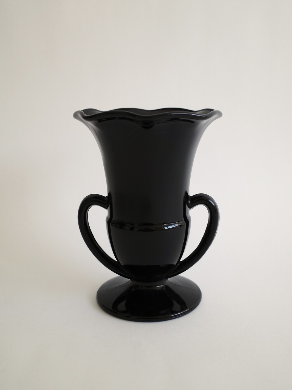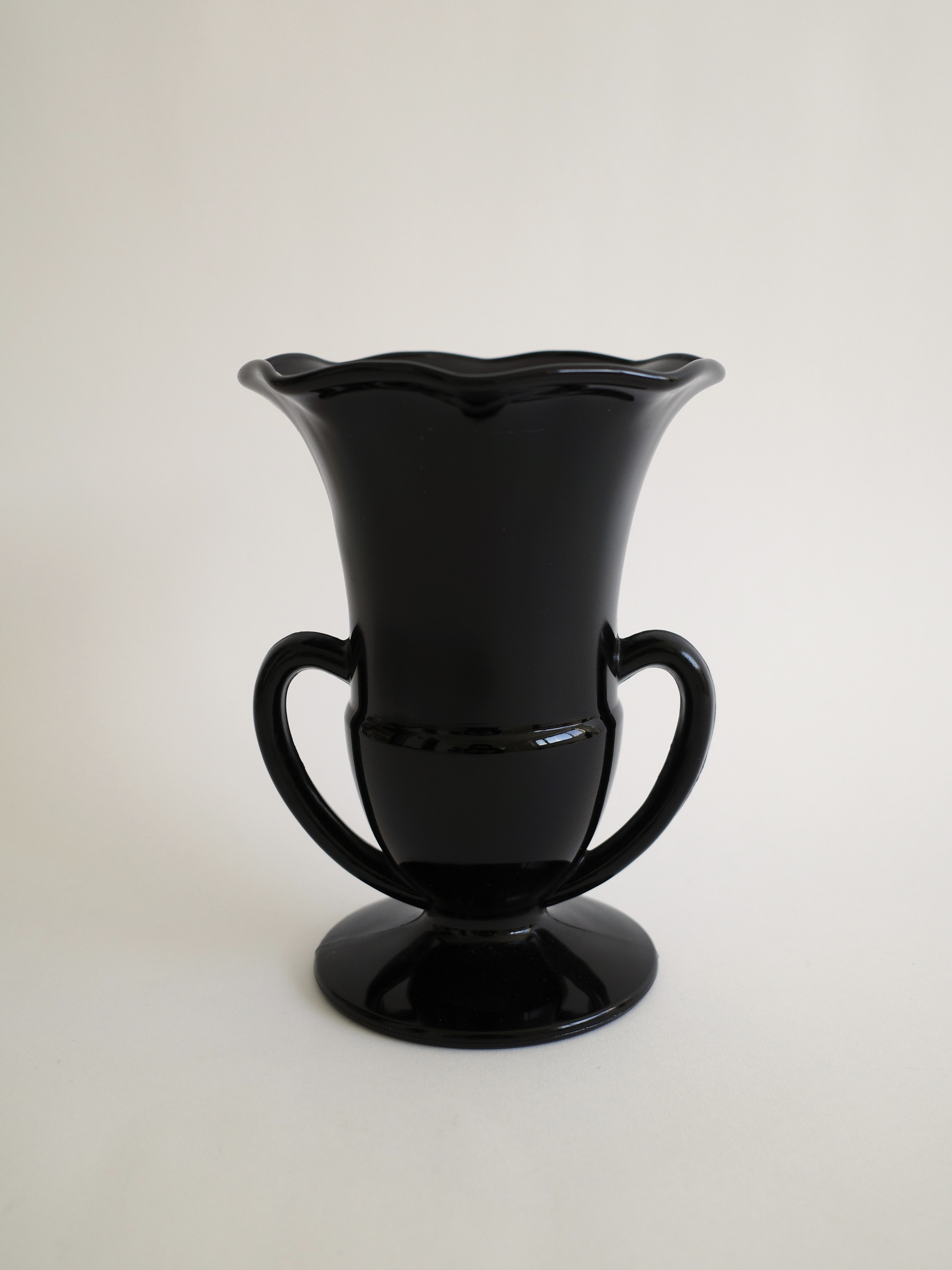 L.E. Smith Black Amethyst Glass Double-Handled Trophy Vase, USA (1930s)