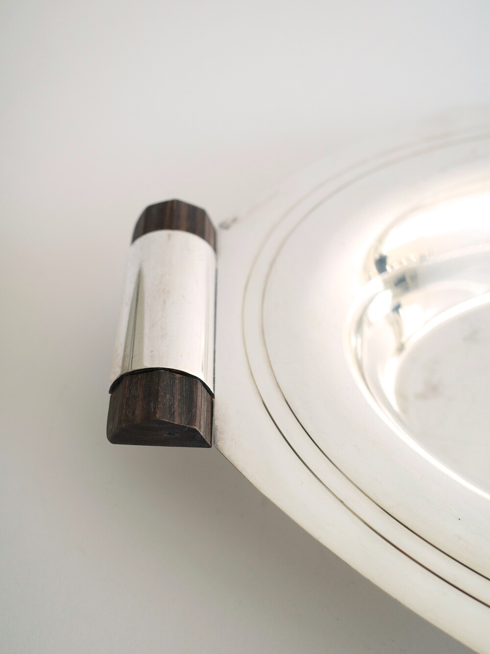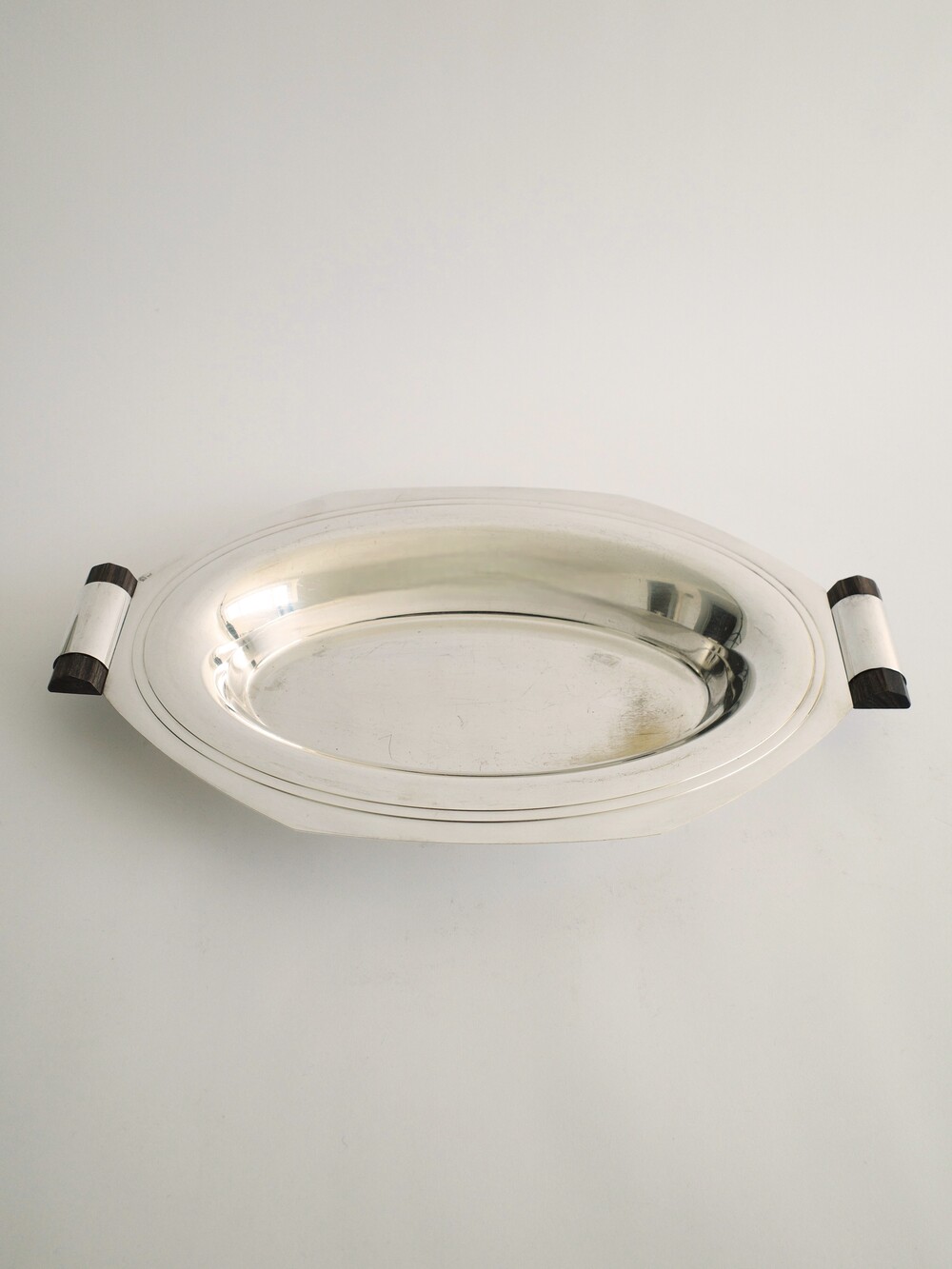 Art Deco Silver-Plated Oval Tray with Wood Handles, France