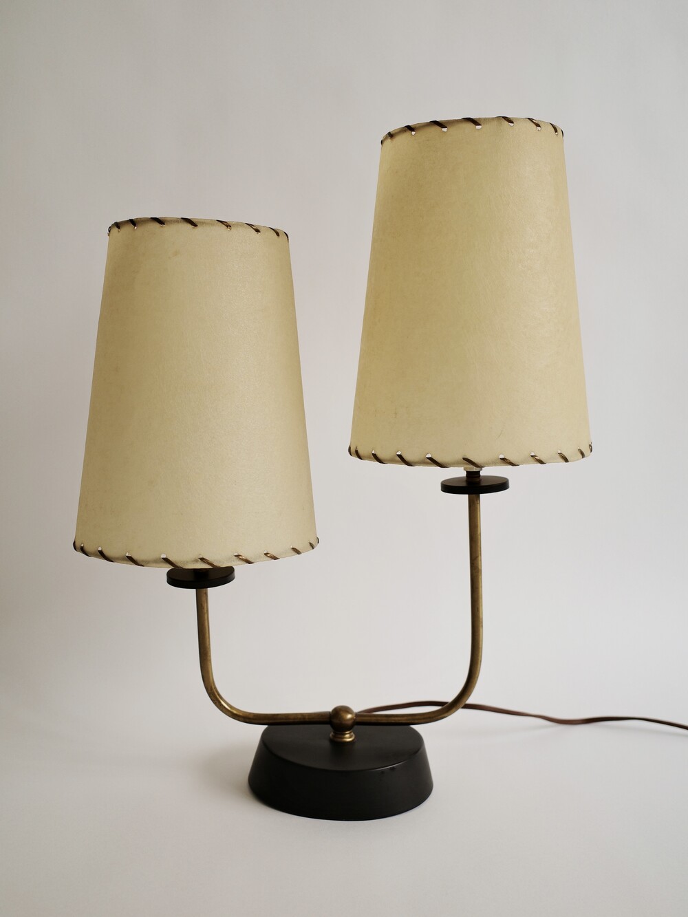 Metal Table Lamp with Dual Fiberglass Shades, USA (1950s)