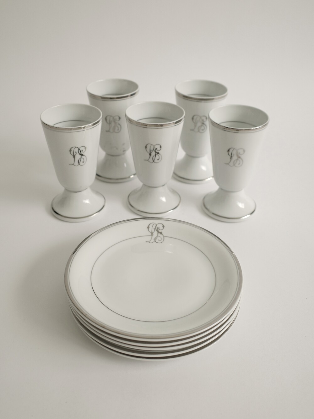 Limoges Silver-White Goblet and Plate Set, France