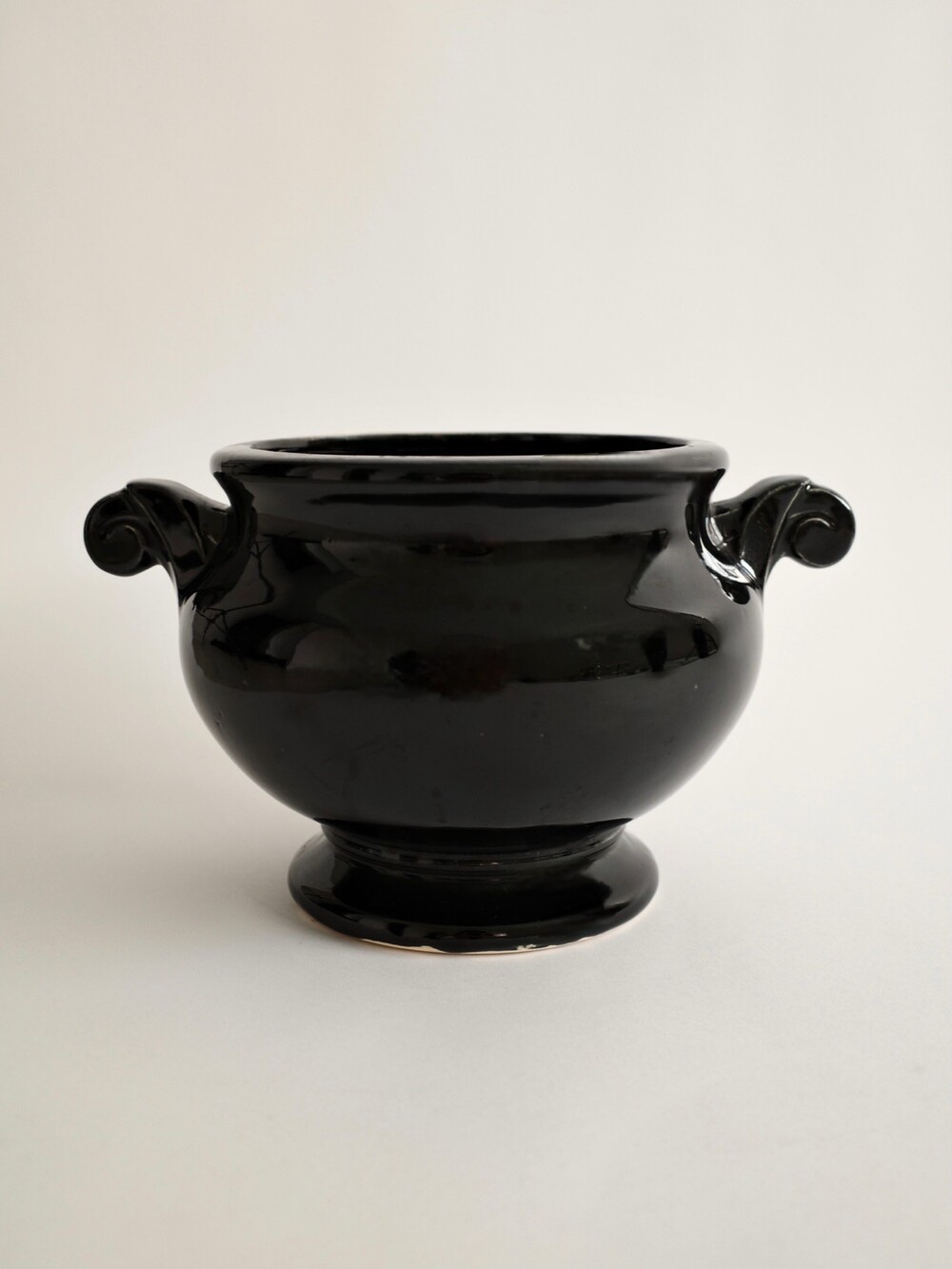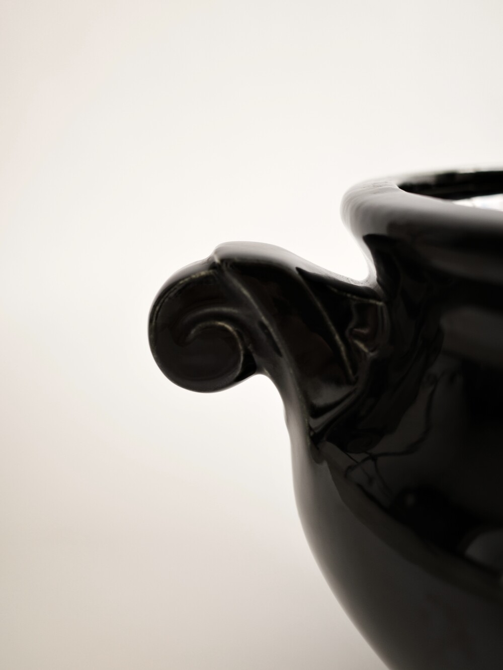 McCoy Pottery Glossy Black Double-Handled Urn Vase, USA