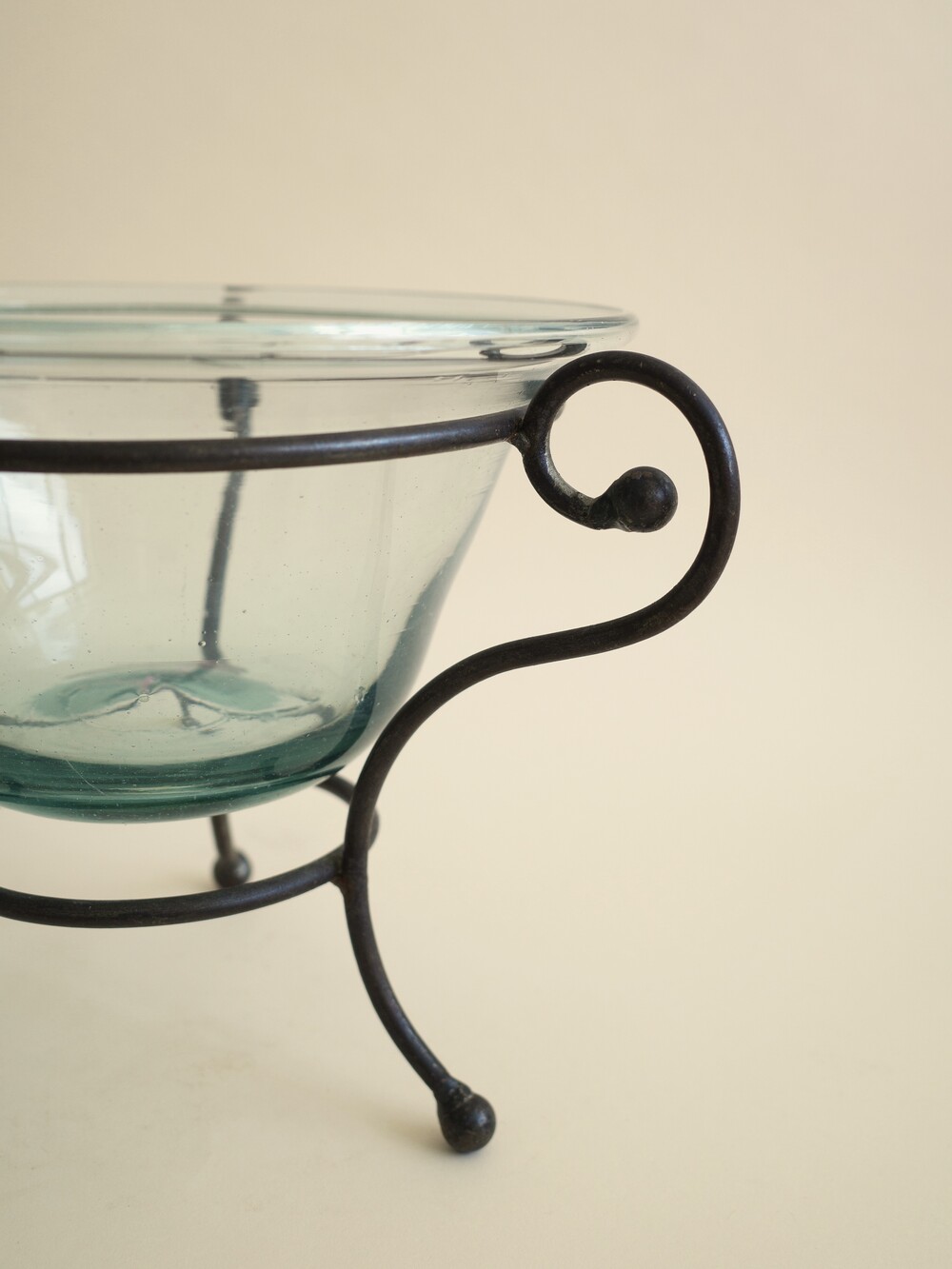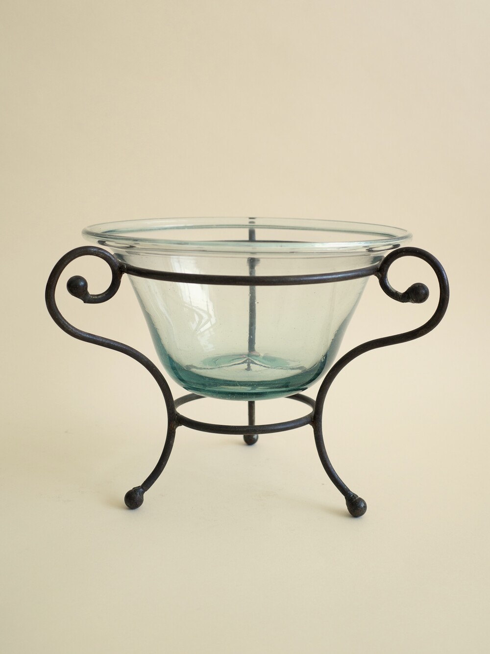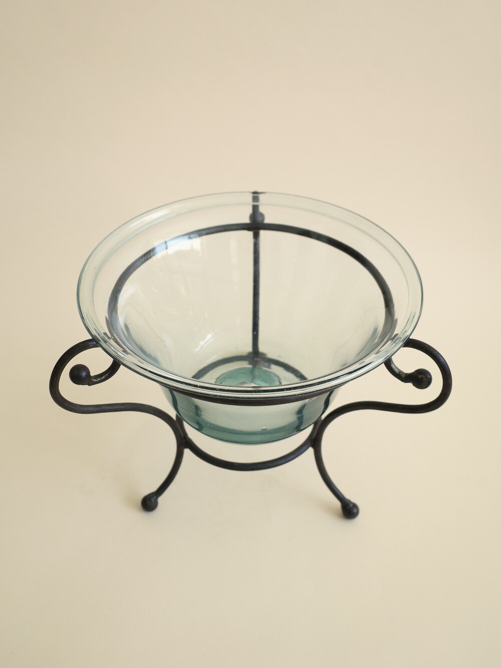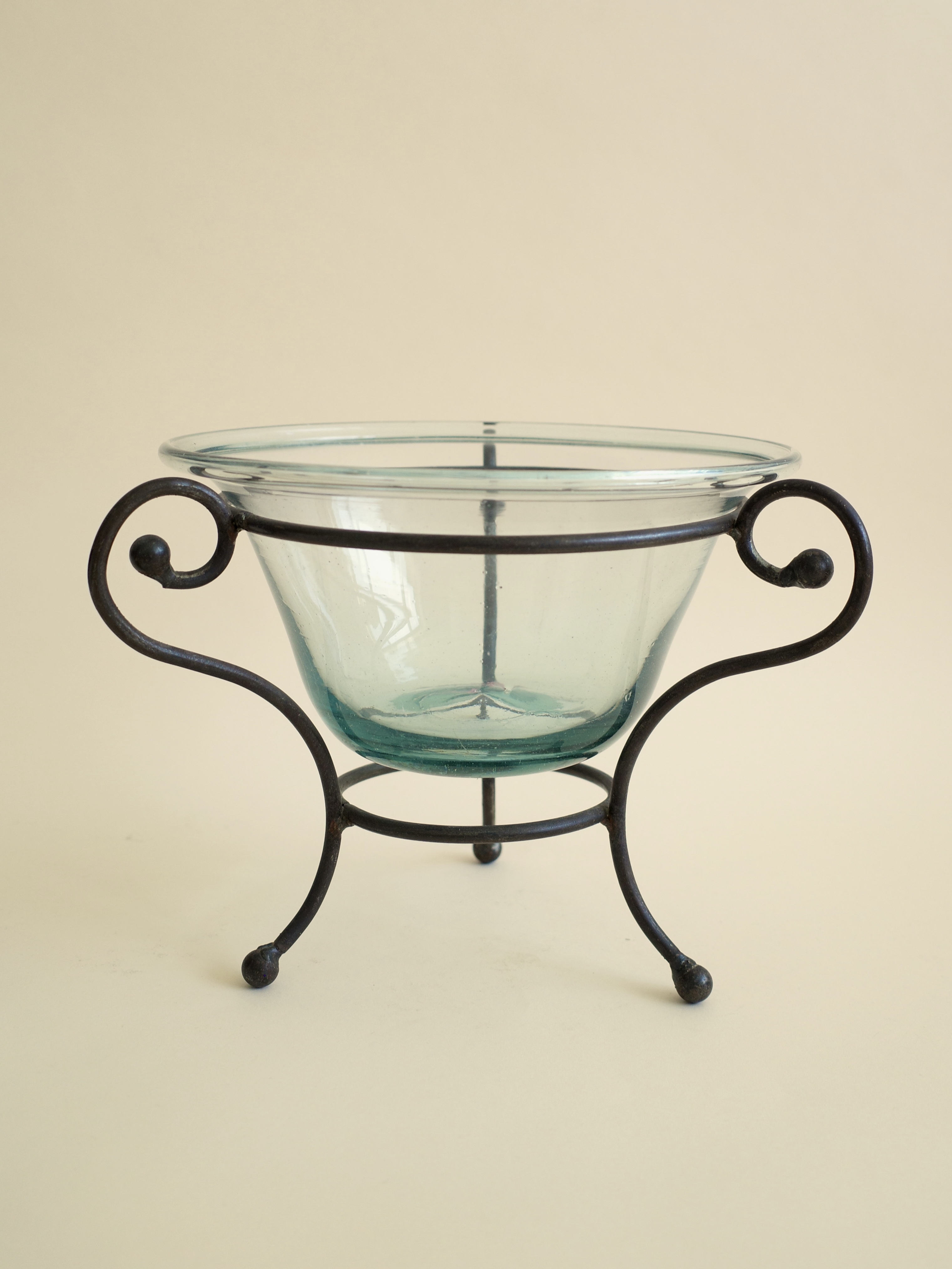 Glass Bowl with Wrought Iron Stand, USA (1980s)